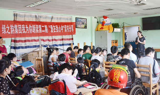 愛在我心中,夏日送“清涼”。2017年8月7日,綠之韻集團(tuán)黨委《我為你朗讀》第二期活動(dòng)“愛在我心中”讀書分享會(huì)走進(jìn)長沙彩虹孤殘兒童服務(wù)中心晨光中心。上午9時(shí)許,在綠之韻集團(tuán)董事總裁、綠之韻公益基金會(huì)理事長勞嘉,綠之韻集團(tuán)副總經(jīng)理梅其慧,綠之韻集團(tuán)黨委書記劉云的帶領(lǐng)下,數(shù)十位綠之韻愛心志愿者帶著自己的家人和孩子們來到長沙彩虹晨光中心,攜著滿滿的愛心與慰問物資,為晨光中心40多名孤殘兒童送來了夏日的“清涼”。