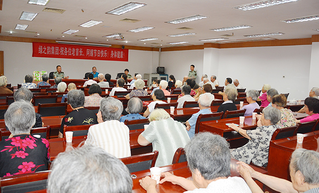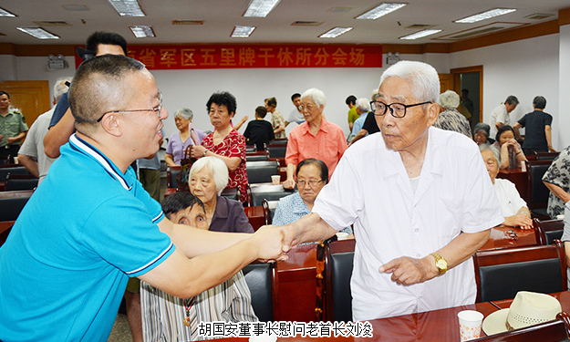 上午9點30分,由胡國安董事長、劉云書記帶隊的綠之韻黨團成員驅(qū)車抵達(dá)湖南省軍區(qū)五里牌干休所。剛?cè)霑觯G之韻愛心慰問成員們就受到了革命老前輩們的熱烈歡迎,致以筆挺的軍禮,軍民魚水之情盡展其間。慰問座談會上,湖南省軍區(qū)五里牌干休所政委謝祝安、所長周祖德,對綠之韻集團胡國安董事長與愛心志愿者的到來表示衷心感謝,并詳細(xì)介紹了五里牌干休所的老軍人現(xiàn)狀。胡國安董事長細(xì)細(xì)聆聽,他在會議上說到:90年來,中國人民解放軍在中國共產(chǎn)黨的領(lǐng)導(dǎo)下,為了人民解放、民族獨立、國家富強,進行了英勇頑強、艱苦卓絕的斗爭。無論是在烽火連天的戰(zhàn)爭年代,還是在和平建設(shè)和改革開放時期,英雄的中國人民解放軍,為祖國、為人民都作出了巨大貢獻(xiàn)。綠之韻集團作為一家具有高度社會責(zé)任感的民族企業(yè),有責(zé)任及義務(wù)為社會奉獻(xiàn)出我們的一份力量。為了感謝老前輩們在戰(zhàn)爭年代為國家立下的汗馬功勞,在八一建軍節(jié)來臨之際,我們向所有的老革命、老前輩,我們偉大的英雄致以最誠摯的敬意。隨后,胡國安董事長與他們一一握手、問候,祝他們節(jié)日快樂,健康長壽。