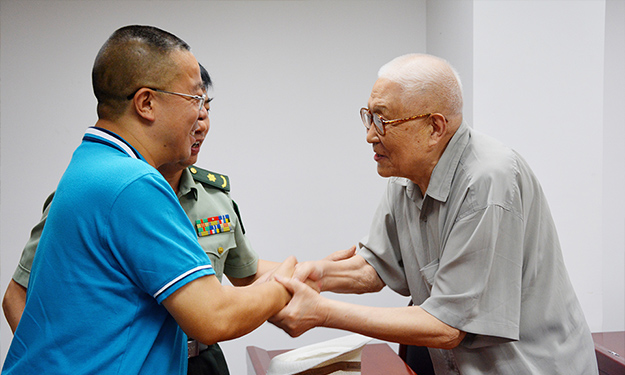 【劉浚簡介】:安徽蒙城人,今年87歲。1940年10月參加新四軍,1941年8月加入中國共產(chǎn)黨。入伍后,先后參加抗日戰(zhàn)爭、解放戰(zhàn)爭和抗美援朝戰(zhàn)爭??箲?zhàn)期間,曾隨新四軍4師特務(wù)團進入抗日敵占區(qū)開辟了豫、皖、蘇抗日根據(jù)地,并參加了泗北游擊戰(zhàn)、山子頭事件和反“掃蕩”等戰(zhàn)斗?,F(xiàn)為正師職離休干部。
