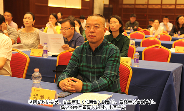 2017年5月17日,湖南省統(tǒng)一戰(zhàn)線聚力脫貧攻堅推進會在湖南賓館成功召開。中共湖南省委常委、省委統(tǒng)戰(zhàn)部部長黃蘭香,湖南省政協(xié)副主席、民盟省委主委楊維剛,湖南省政協(xié)副主席、九三學社中央常委、湖南省委主委張大方,湖南省政協(xié)副主席、致公黨湖南省委主委胡旭晟,中共湖南省委統(tǒng)戰(zhàn)部常務(wù)副部長譚平等領(lǐng)導(dǎo)出席會議。湖南省政協(xié)委員、省工商聯(lián)(總商會)副會長、省慈善總會副會長、綠之韻集團董事長胡國安作為非公有制企業(yè)家代表受邀出席會議。