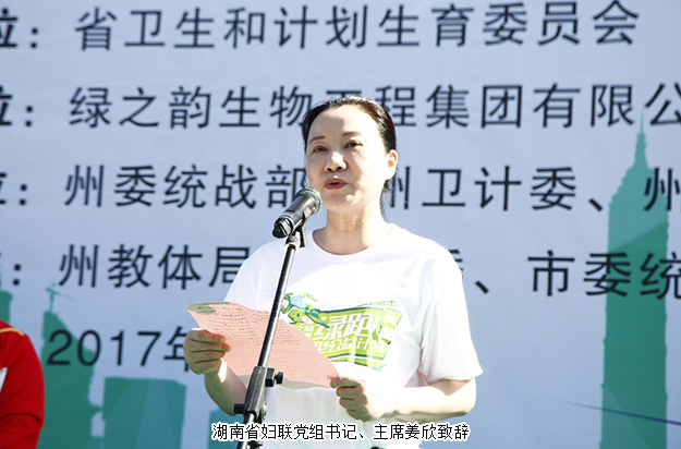 啟動儀式上,中共湘西自治州州委副書記、統(tǒng)戰(zhàn)部部長曹普華致辭:關(guān)愛女性健康,是各級黨委政府義不容辭的責(zé)任。湘西自治州將建立起政府主導(dǎo)、部門合作、醫(yī)療機構(gòu)實施、全社會參與的婦女“乳腺癌”和“宮頸癌”防治模式與協(xié)作機制,努力營造全社會關(guān)愛女性健康的良好氛圍。綠之韻集團(tuán)作為我省著名的大型非公企業(yè),多年來積極承擔(dān)社會責(zé)任,大力開展賑災(zāi)濟困、興教助學(xué)等公益活動,得到了社會的普遍贊譽。這次,綠之韻集團(tuán)與省委統(tǒng)戰(zhàn)部、省衛(wèi)計委、省婦聯(lián)、省海聯(lián)會組織對湘西、懷化、益陽三個市州的城區(qū)城鎮(zhèn)低保已婚婦女,開展3萬例“兩癌”免費檢查,又一次彰顯了綠之韻集團(tuán)強烈的社會責(zé)任感和樂于奉獻(xiàn)的愛心情懷。湖南省婦聯(lián)黨組書記、主席姜欣在講話中指出“兩癌”免費檢查,既是民生項目,更是民心工程。項目的實施,表明了各級黨委政府健康脫貧的責(zé)任與決心,彰顯了社會各界助力脫貧的熱情與力量,體現(xiàn)了廣大婦女群眾對健康生活的追求與向往。希望廣大婦女學(xué)習(xí)健康知識,提升健康意識,做到健康與美麗同行;希望更多像綠之韻集團(tuán)這樣的愛心企業(yè)加入到健康脫貧的行動中來,為貧困患病婦女送去更多的溫暖與關(guān)愛。湖南省政協(xié)委員、省工商聯(lián)(總商會)副會長、省慈善總會副會長、綠之韻集團(tuán)董事長胡國安致辭,他向蒞臨活動現(xiàn)場的各位領(lǐng)導(dǎo)、嘉賓,以及來自全國各地的“綠跑”愛好者、綠之韻家人們致以熱烈的歡迎和誠摯的問候。此次“兩癌”檢查救助暨公益“綠跑”,旨在將綠之韻發(fā)展融入到國家“健康中國”“精準(zhǔn)扶貧”戰(zhàn)略中,大力弘揚健康向上、自信樂觀的生活理念,積極傳遞公益正能量,樹立起“健康+公益”的社會新風(fēng)尚。
