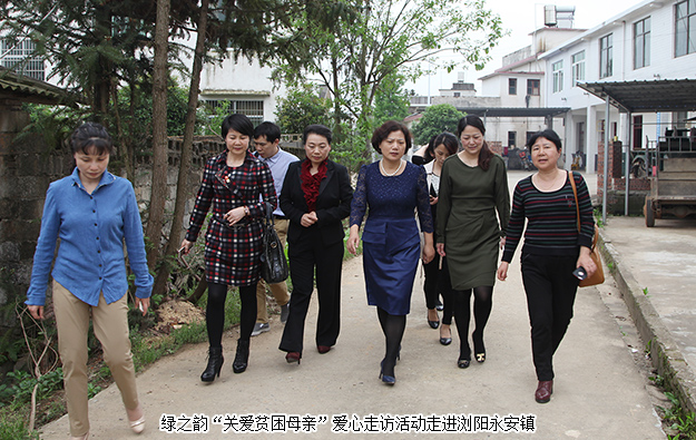 2017年4月18日,由湖南省婦聯(lián)、綠之韻集團(tuán)黨委、湖南省綠之韻公益基金會聯(lián)合主辦的“關(guān)愛貧困母親”愛心走訪活動走進(jìn)瀏陽市永安鎮(zhèn)。湖南省婦聯(lián)副主席盧妹香,湖南省婦女兒童發(fā)展基金會副理事長兼秘書長周萍,長沙市婦聯(lián)副主席鐘小珍,長沙市婦聯(lián)副縣級干部劉臘香,瀏陽市婦聯(lián)主席龍花明,綠之韻集團(tuán)總裁、綠之韻公益基金會理事長勞嘉,綠之韻集團(tuán)黨委書記劉云等參加本次活動,為患病的貧困母親送去溫暖與關(guān)懷。