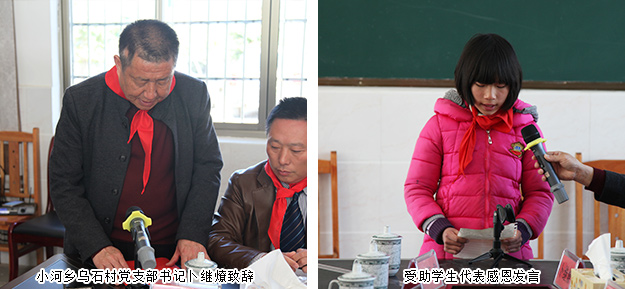 活動(dòng)現(xiàn)場(chǎng),孩子們?yōu)閰⑴c此次活動(dòng)的領(lǐng)導(dǎo)及愛(ài)心志愿者們佩戴了紅領(lǐng)巾,以特殊的方式表達(dá)了他們的感激之情。會(huì)上,小河鄉(xiāng)烏石村黨支部書(shū)記卜繼燎首先致辭并對(duì)綠之韻集團(tuán)黨委、綠之韻公益基金會(huì)的愛(ài)心善行表示感謝。這次的回訪(fǎng)活動(dòng),不僅僅表達(dá)了一份關(guān)懷,更傳遞著一種美德,一種精神,一種力量。