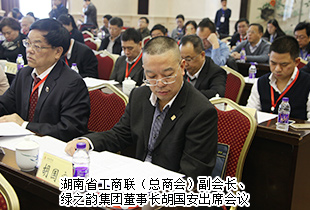 2016年11月29日上午,湖南省委非公有制經濟工作會議在湖南賓館召開。中共湖南省委常委、省人民政府常務副省長陳向群,中共湖南省委常委、省紀委書記傅奎,中共湖南省委常委、省委統(tǒng)戰(zhàn)部部長黃蘭香,湖南省人民政府副省長、省工商聯(lián)主席何報翔,湖南省人民政府副省長張劍飛,湖南省政協(xié)副主席、民盟省委主委、省國土資源廳副廳長楊維剛等出席會議,湖南省工商聯(lián)(總商會)副會長、綠之韻集團董事長胡國安出席本次會議。
