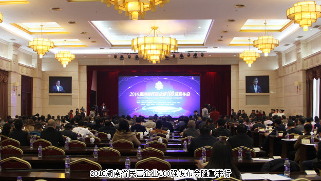 下午,經湖南省人民政府批準,湖南省工商聯(lián)(湖南省總商會)在湖南賓館會議中心隆重發(fā)布“2016湖南省民營企業(yè)100強”名單以及湖南工業(yè)制造業(yè)、農業(yè)產業(yè)化、商貿服務業(yè)、文化旅游業(yè)、開發(fā)建設業(yè)、進出口業(yè)等領域10強民營企業(yè)名單。