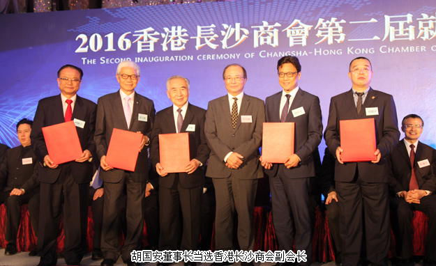 11月4日,香港長(zhǎng)沙商會(huì)第二屆就職典禮暨招商推介會(huì)在香港港島海怡君綽酒店隆重舉行。中共長(zhǎng)沙市委常委、統(tǒng)戰(zhàn)部長(zhǎng)、長(zhǎng)沙海外聯(lián)誼會(huì)會(huì)長(zhǎng)譚小平,長(zhǎng)沙市政協(xié)副主席、市工商聯(lián)主席、市總商會(huì)會(huì)長(zhǎng)彭繼球,湖南省人民政府駐深圳辦事處主任廖克勤,中共長(zhǎng)沙市委統(tǒng)戰(zhàn)部副部長(zhǎng)、市僑聯(lián)黨組書記王國平先生,中共長(zhǎng)沙市委統(tǒng)戰(zhàn)部副部長(zhǎng)、市工商聯(lián)黨組書記丁文女士,長(zhǎng)沙市天心區(qū)委書記朱東鐵,以及香港和長(zhǎng)沙部分商會(huì)負(fù)責(zé)人、知名企業(yè)家、長(zhǎng)沙市政協(xié)港澳委員等共計(jì)400人出席。湖南省政協(xié)委員、長(zhǎng)沙市海外聯(lián)誼會(huì)副會(huì)長(zhǎng)、綠之韻集團(tuán)董事長(zhǎng)胡國安當(dāng)選香港長(zhǎng)沙商會(huì)副會(huì)長(zhǎng),長(zhǎng)沙市政協(xié)委員、綠之韻善德國際創(chuàng)始人張曉琴,香港隆鉦生物科技集團(tuán)有限公司董事長(zhǎng)韓曉鳴,香港和恩祺生物科技有限公司董事長(zhǎng)張建軍當(dāng)選會(huì)董。