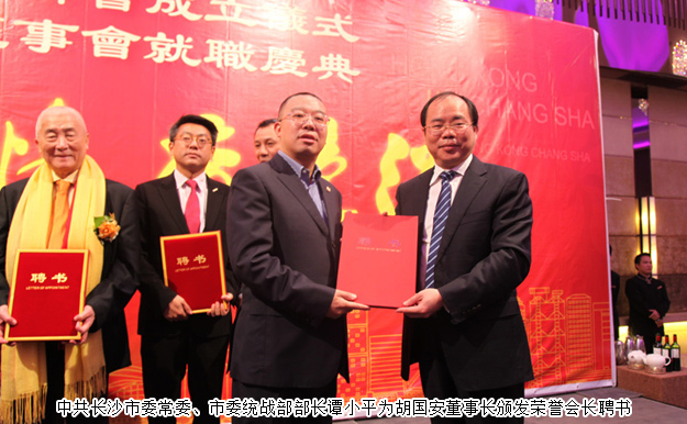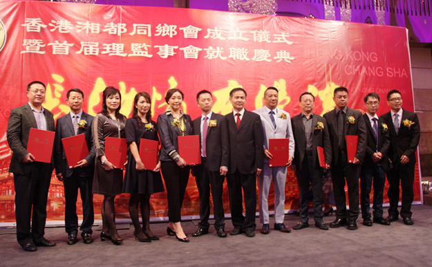 湖南香港湘都同鄉(xiāng)會(huì)的成立得到了中央政府駐港聯(lián)絡(luò)辦、湖南省委省政府、長(zhǎng)沙市委市政府的關(guān)心和大力支持。中央政府駐港聯(lián)絡(luò)辦副主任楊建平先生,中共湖南省委常委、省委統(tǒng)戰(zhàn)部部長(zhǎng)黃蘭香女士,省政協(xié)港澳臺(tái)僑和外事委員會(huì)主任陳益枝,省委統(tǒng)戰(zhàn)部副部長(zhǎng)陳瀟,省政府駐深圳辦事處主任廖克勤,中共長(zhǎng)沙市委常委、市委統(tǒng)戰(zhàn)部部長(zhǎng)譚小平等到會(huì)祝賀。綠之韻集團(tuán)胡國(guó)安董事長(zhǎng)任名譽(yù)會(huì)長(zhǎng),華誼兄弟(長(zhǎng)沙)電影文化城有限公司董事長(zhǎng)劉啟東任首屆會(huì)長(zhǎng)。