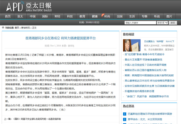 2016年11月1日,湖南香港湘都同鄉(xiāng)會(huì)在香港北角海逸君綽酒店成立。同鄉(xiāng)會(huì)號(hào)召居港老鄉(xiāng)團(tuán)結(jié)一心,共創(chuàng)美好未來。會(huì)上,來自香港的200多名湖南老鄉(xiāng)匯聚一堂,共暢友誼,共謀未來。