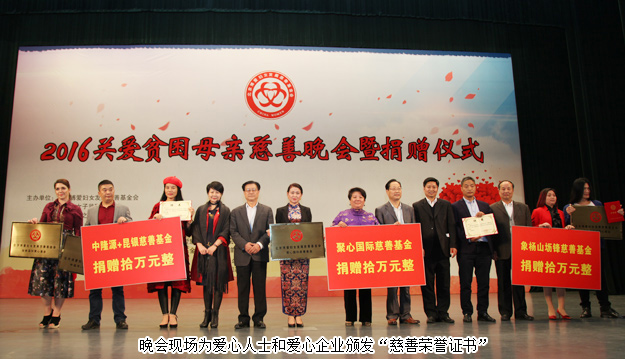 為愛歌唱,用心發(fā)聲,用行動去改變。晚會現(xiàn)場啟動了安娜國際愛心基金、閆國超藝術(shù)愛心基金、聚心國際慈善基金、明清感恩社慈善基金等8個專項基金,得到了眾多的愛心人士、企業(yè)及國際慈善友人的愛心捐贈,共募集款物280多萬元。綠之韻集團黨委書記劉云代表綠之韻公益基金會為愛心企業(yè)頒發(fā)榮譽證書,并動情表示:作為家庭的核心,沒有幸福的母親,就沒有幸福的家庭。在貧困人口中,貧困母親的生活境遇最為艱辛。我們要在生活上幫助她們,在經(jīng)濟上資助她們,在精神上關(guān)心她們。幫助了一個貧困母親,就是幫助了一個家庭;每一個母親的改變,就是無數(shù)個家庭的受益。