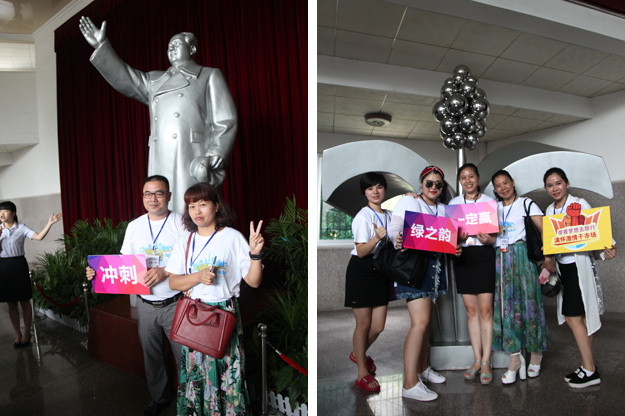 第二站,我們來到了為紀念毛澤東誕辰一百周年而修建的神奇的毛主席銅像廣場,主席身軀偉岸,手握書卷,學者風范。營銷精英們莊嚴肅穆,攜著花籃,虔誠鞠躬,默默將心中的愿望與主席分享,希望美愿成真!