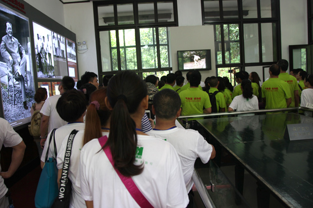 第三站,我們到達的是中國風水寶地毛澤東故居,這是一棟普普通通的江南農舍,為“一擔柴”式的房子。它座南朝北,背山面水。這是我們新中國偉大領袖毛澤東主席誕生的地方,它被譽為“紅太陽升起的地方”、中國革命的“圣地”,這里留下了毛澤東主席青少年時期求學、生活、勞動及從事革命活動的痕跡,見證了他點燃革命的圣火。