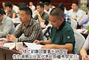 2016年6月18—20日,由新疆兵團(tuán)團(tuán)委、中國(guó)青年企業(yè)家協(xié)會(huì)共同舉辦的“中國(guó)青年企業(yè)家兵團(tuán)行”經(jīng)貿(mào)考察活動(dòng)舉行,來(lái)自全國(guó)各地的70余名知名青年企業(yè)家齊聚烏魯木齊參加此次活動(dòng),中國(guó)青年企業(yè)家協(xié)會(huì)常務(wù)理事、湖南省青年企業(yè)家協(xié)會(huì)副會(huì)長(zhǎng)、綠之韻集團(tuán)董事長(zhǎng)胡國(guó)安作為湖南企業(yè)家代表赴新疆考察學(xué)習(xí)。