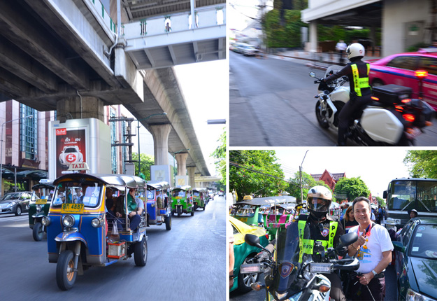 警車開道,威風(fēng)凜凜,趣味盎然的嘟嘟車綠之韻專列車隊載著綠之韻營銷精英出發(fā)了!泰國,我們來了!