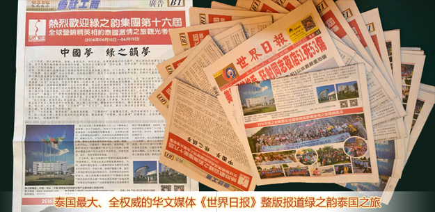 《世界日報》整版綠之韻泰國艷彩之旅的報道充分鼓舞了家人們的心,中泰交流綠之韻歡迎晚宴上,香檳、美食,綠之韻人一展才藝,歡聲笑語飄蕩在這個神奇的國度上,久久不能散去……