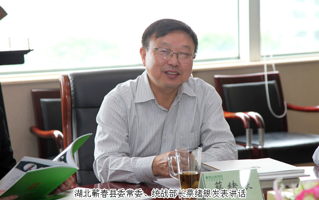 2016年4月29日,中共湖北蘄春縣委常委、統(tǒng)戰(zhàn)部長(zhǎng)蔡緒銀,蘄春縣人大常委會(huì)副主任紀(jì)必明,蘄春縣人民政府副縣長(zhǎng)石玉艷,蘄春縣臺(tái)辦主任毛裕華,蘄春縣招商局副局長(zhǎng)丁威,中共湖南省委統(tǒng)戰(zhàn)部經(jīng)濟(jì)處副處長(zhǎng)陳勝等一行蒞臨綠之韻考察調(diào)研,綠之韻集團(tuán)董事、執(zhí)行總裁勞嘉,辦公室主任馮紅等陪同考察。