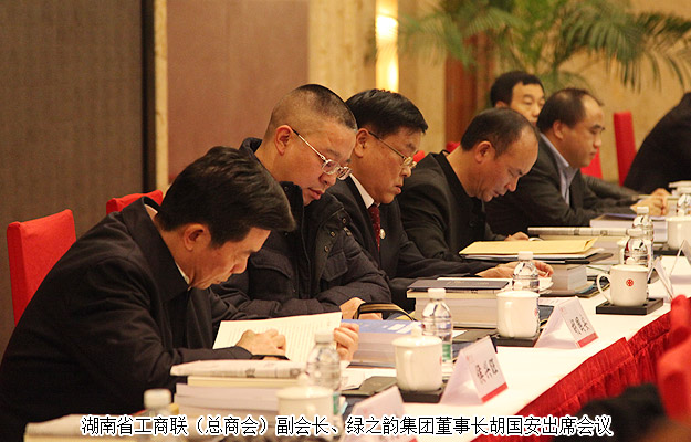 2016年1月11日,湖南省工商聯(lián)(總商會)十一屆六次常委會議、十一屆五次執(zhí)委會議在長沙召開,大會總結(jié)2015年工作,部署2016年任務(wù),會上還發(fā)出“積極參與‘萬企幫萬村’精準扶貧”的行動倡議。湖南省副省長、省工商聯(lián)(總商會)主席何報翔出席會議并講話。湖南省發(fā)改委副主任王亮方,湖南省工商聯(lián)(總商會)副會長、綠之韻集團董事長胡國安,湖南省工商聯(lián)女商會副會長、綠之韻集團董事執(zhí)行總裁勞嘉以及湖南省工商聯(lián)(總商會)全體副主席、副會長、常執(zhí)委,駐湘副省級以上地區(qū)異地商會會長、秘書長,省委統(tǒng)戰(zhàn)部、省工商聯(lián)機關(guān)處室負責(zé)人參加會議。