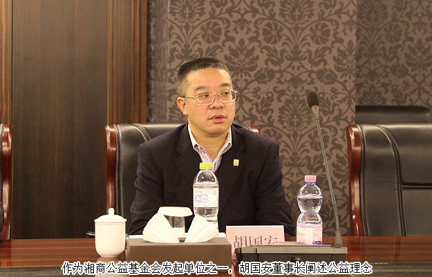 2016年1月5日,湖南省工商聯(lián)(總商會)全體主席會長召開,中共湖南省委常委、省委統(tǒng)戰(zhàn)部部長黃蘭香,湖南省副省長、省工商聯(lián)主席何報(bào)翔等出席會議并講話。同時(shí),由省工商聯(lián)、綠之韻集團(tuán)、愛爾眼科等聯(lián)合籌資600萬元成立的湖南省湘商公益基金會在本次會議中正式成立。中共湖南省委常委、省委統(tǒng)戰(zhàn)部部長黃蘭香為基金會成立授牌,綠之韻集團(tuán)董事長胡國安作為湖南省工商聯(lián)(總商會)副會長、湘商公益基金會副理事長出席會議。