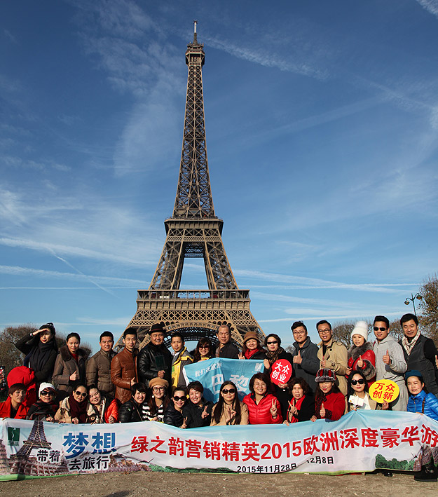 法國位于歐洲大陸西部,首都巴黎是法國政治、經(jīng)濟、文化和交通中心,盧浮宮博物館凡爾賽宮和巴黎圣母院譽滿全球,凱旋門迎面而立的香榭麗舍被譽為世界上最美麗的大街,其地上與地下交通四通八達、非常方便,每天客流量達1300萬人。巴黎的標志建筑——埃菲爾鐵塔像一個鋼鐵巨人高高地聳立在恬靜的塞納河畔。法國的時裝在世界上享有盛譽,選料豐富、優(yōu)異,設(shè)計大膽,制作技術(shù)高超,使其一直引導(dǎo)世界時裝潮流。法式大餐,紅磨坊,優(yōu)雅的味蕾和精神享受都在這里得到滿足。當(dāng)綠之韻人踏足這片國土,內(nèi)心的激情瞬間被點燃,觀光、購物的狀態(tài)如同日常在市場奔波的狀態(tài),香包、首飾、時裝、香水,甚有綠之韻家人犧牲景點時間去血拼,這一個個刷卡狂人在日常的市場一線同樣也是“刷卡狂人”,因為一個夢想,因為一個選擇,因為一份堅持,他們讓夢想照進了現(xiàn)實,充分享受著物質(zhì)精神富足帶來的無與倫比的快樂。