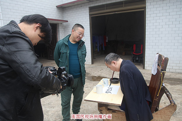 在絕望的打擊里掙扎,在心如死灰的悲觀里度日,父母的眼淚與幼女的期盼讓他終于還是挺了過(guò)來(lái)。從此,嘴成了他唯一可以使用的工具。喪失勞動(dòng)力的周國(guó)民開始用畫畫寄托。沒(méi)有經(jīng)過(guò)任何的學(xué)習(xí),也沒(méi)有人指點(diǎn)。周國(guó)民一筆筆畫畫、寫字,炎夏、寒冬,他始終堅(jiān)持著,正常人能夠做到的,他只要多花點(diǎn)時(shí)間也一定能夠做到。