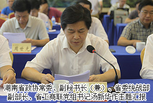 為加快非公有制經(jīng)濟(jì)和中小企業(yè)發(fā)展,促進(jìn)民營企業(yè)健康平穩(wěn)發(fā)展,2015年9月11日上午九點(diǎn),湖南省政協(xié)關(guān)于“我省民營企業(yè)發(fā)展面臨的問題與對(duì)策”雙周協(xié)商會(huì)在湖南賓館會(huì)議中心隆重舉行。湖南省政協(xié)副主席張大方、歐陽斌,秘書長袁新華,湖南省政協(xié)常委、副秘書長(兼)、省委統(tǒng)戰(zhàn)部副部長、省工商聯(lián)黨組書記湯新華,湖南省政協(xié)常委、省工商聯(lián)(總商會(huì))副主席、長沙市政協(xié)副主席、長沙市工商聯(lián)(總商會(huì))主席(會(huì)長)彭繼球,湖南省政協(xié)委員、郴州市政協(xié)副主席、郴州市工商聯(lián)(總商會(huì))主席(會(huì)長)周海林等領(lǐng)導(dǎo)出席會(huì)議,部分省政協(xié)委員、專家學(xué)者,相關(guān)省直單位負(fù)責(zé)人,市縣政協(xié)負(fù)責(zé)人等參加會(huì)議。湖南省政協(xié)委員、省工商聯(lián)(總商會(huì))副會(huì)長、綠之韻集團(tuán)董事長胡國安應(yīng)邀出席。本次會(huì)議由湖南省政協(xié)副主席歐陽斌主持。