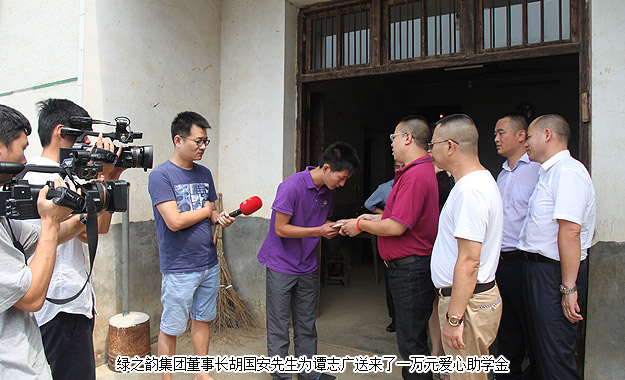 智廣以621分的高考成績考上了大連理工大學(xué),綠之韻集團(tuán)董事長胡國安先生與湖南地區(qū)的愛心經(jīng)銷商代表們?yōu)橹菑V送來了一萬元愛心助學(xué)金。胡國安董事長鼓勵智廣,暫時(shí)的困境并不可怕,最重要的是克服困難好好學(xué)習(xí),勇敢地走出去,通過自己的努力,成為家人的驕傲,成為可以幫助別人的人。
