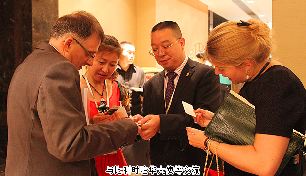 2015年6月20日—6月28日,比利時(shí)國王菲利普及馬蒂爾德王后訪華。在為期八天的訪問行程中,國王夫婦進(jìn)行了一系列官方、商務(wù)、文化和學(xué)術(shù)活動(dòng)。23日,國家主席習(xí)近平在人民大會(huì)堂東門外廣場舉行歡迎儀式,歡迎菲利普國王一行。本次陪同出訪的有比利時(shí)外交大臣、3位比利時(shí)地區(qū)首席大臣,還包括比利時(shí)企業(yè)、高校、媒體等重要代表。24日“投資比利時(shí)”研討會(huì)在北京金融街威斯汀大酒店二層盛大召開。比利時(shí)國王菲利普先生、商務(wù)部副部長王受文先生、比利時(shí)—中國經(jīng)貿(mào)委員會(huì)主席Dewit Bernard先生出席并分別致詞。綠之韻集團(tuán)董事長胡國安受比利時(shí)駐華大使館邀請(qǐng)出席本次會(huì)議。
