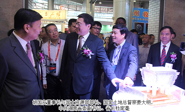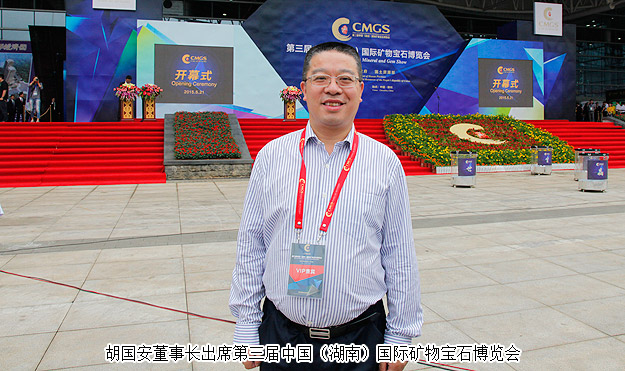2015年5月21-25日, 由湖南省人民政府和國土資源部聯(lián)合主辦,省國土資源廳、長沙市政府、郴州市政府等聯(lián)合承辦的第三屆中國(湖南)國際礦物寶石博覽會(huì)在郴州舉行。國土資源部部長、黨組書記、國家土地總督察姜大明宣布第三屆礦博會(huì)開幕,湖南省委副書記、省長杜家毫出席開幕式并講話。中共湖南省委常委、常務(wù)副省長陳肇雄主持開幕式。湖南省工商聯(lián)(總商會(huì))副會(huì)長、綠之韻集團(tuán)董事長胡國安受邀出席開幕式,并陪同國土資源部部長、黨組書記、國家土地總督姜大明,中共湖南省委副書記、湖南省人民政府省長杜家毫等領(lǐng)導(dǎo)一行視察展館。