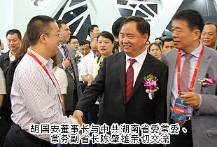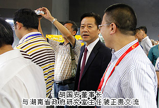 陪同領(lǐng)導(dǎo)巡館以后,胡國安董事長對(duì)本次礦博會(huì)成功舉辦高度評(píng)價(jià):“國際礦博會(huì)的舉辦,讓‘湖南走出去’戰(zhàn)略得到了充實(shí)提升。這么多國家參展,必將吸引全世界的目光,這對(duì)于湖南文化和湖南經(jīng)濟(jì)社會(huì)來說,是一個(gè)天然的展示機(jī)會(huì)。湖南應(yīng)充分利用博覽會(huì)搭建的平臺(tái),‘把會(huì)展與文化、旅游、科技、信息、商貿(mào)、物流更好地結(jié)合起來,著力推動(dòng)會(huì)展經(jīng)濟(jì)和現(xiàn)代服務(wù)業(yè)加快發(fā)展’”。他表示:湖南地處中國中部城市要沖,無論是地理位置還是區(qū)位優(yōu)勢(shì)來看,都是屬于發(fā)展要沖,加上洞庭湖國家級(jí)生態(tài)經(jīng)濟(jì)區(qū)和長江經(jīng)濟(jì)帶的確立,更突顯了湖南的發(fā)展優(yōu)勢(shì)。推動(dòng)會(huì)展經(jīng)濟(jì)發(fā)展,這是現(xiàn)代經(jīng)濟(jì)發(fā)展的一個(gè)重要支撐,如果與湖湘文化和大湘西旅游資源及商貿(mào)物流進(jìn)行融合發(fā)展,這就讓湖南經(jīng)濟(jì)具備了強(qiáng)大的內(nèi)生動(dòng)力,為湖南改革開放提供了一個(gè)天然的通道和平臺(tái)。所以,我們既要關(guān)注這次郴州礦博會(huì)的盛況,更要與湖南未來的發(fā)展結(jié)合起來看,目光不限于一隅,思路才會(huì)天地闊。