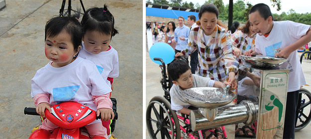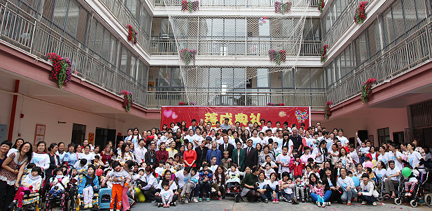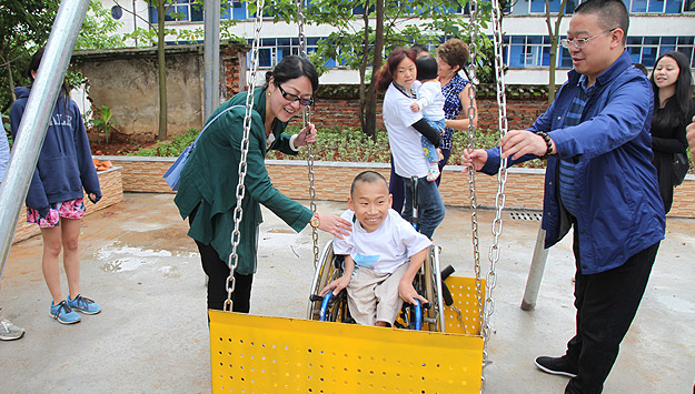 隨后,綠之韻愛心志愿者們與分配的小家庭一起,分組陪伴孩子們從新家院子到游樂場(chǎng)玩耍,同孩子們一起用餐和學(xué)習(xí)。雖然一些孩子動(dòng)作遲鈍、在語言交流上有一些困難,但孩子們很快和熱情的綠之韻的愛心志愿者們打成一片,玩得非常開心。胡國安董事長和勞嘉副總裁親自為坐在輪椅上的小朋友系上特制秋千的綁帶,讓他們也感受到在秋千上飛起來感覺,孩子們的笑聲感染了現(xiàn)場(chǎng)每一個(gè)人。