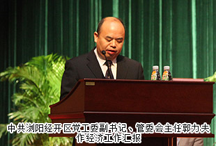 適應(yīng)新常態(tài),謀求新跨越。為貫徹落實(shí)中共長沙市委、瀏陽市委經(jīng)濟(jì)工作會議精神,表彰先進(jìn)企業(yè)和個人,認(rèn)真總結(jié)去年經(jīng)濟(jì)工作,全面部署今年經(jīng)濟(jì)工作,2015年3月17日,國家級瀏陽經(jīng)濟(jì)技術(shù)開發(fā)區(qū)2015年度經(jīng)濟(jì)工作會議在金陽藝術(shù)中心大劇院成功召開。中共瀏陽經(jīng)開區(qū)黨工委書記周岳云,黨工委副書記、管委會主任郭力夫等領(lǐng)導(dǎo)蒞臨大會現(xiàn)場。綠之韻集團(tuán)作為受表彰的企業(yè)參加了會議,綠之韻集團(tuán)董事常務(wù)副總裁勞嘉、集團(tuán)黨總支部書記許達(dá)仲、綠之韻國際大酒店副總經(jīng)理胡均安等應(yīng)邀出席。