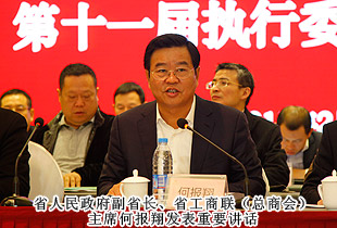 會(huì)上,中共湖南省委統(tǒng)戰(zhàn)部副部長(zhǎng)、省工商聯(lián)黨組書(shū)記湯新華作了十一屆四次執(zhí)委會(huì)議工作報(bào)告,他對(duì)2014年的工作進(jìn)行回顧,對(duì)2015年的重點(diǎn)工作進(jìn)行了說(shuō)明。湖南省人民政府副省長(zhǎng)、省工商聯(lián)主席何報(bào)翔在會(huì)上發(fā)表了重要講話(huà),他要求各位執(zhí)委認(rèn)真貫徹落實(shí)黨的十八大和十八屆三中、四中全會(huì)以及中央、省委經(jīng)濟(jì)工作會(huì)議精神,緊緊圍繞全面小康建設(shè)、全面深化改革、全國(guó)推進(jìn)依法治省工作大局,突出“兩個(gè)健康”工作主題,強(qiáng)化“服務(wù)湘商崛起,助推湖南發(fā)展”工作理念,積極引導(dǎo)民營(yíng)經(jīng)濟(jì)在新常態(tài)下加快轉(zhuǎn)型升級(jí),為推進(jìn)全省非公經(jīng)濟(jì)健康快速發(fā)展貢獻(xiàn)力量。