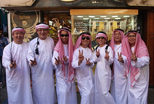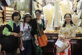 迪拜一度被譽(yù)為黃金城,當(dāng)?shù)氐狞S金亦一度因?yàn)榻饍r(jià)低于鄰近中東各國而造成大量外流。綠之韻人徹底領(lǐng)略了一把什么叫真正的金碧輝煌。由于阿拉伯人對(duì)黃金情有獨(dú)鐘,所以這里的黃金首飾工藝也特別精致別致,是國內(nèi)完全沒法比的,各式夸張的珠寶金飾,你只有在電影里的國王和皇后身上才會(huì)看到?;锇閭冪姁鄣狞S金一起合影,更不忘把看中的心愛之物收入囊中。