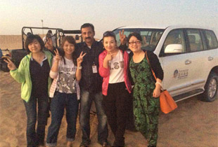 沖沙,是阿聯(lián)酋乃至整個(gè)阿拉伯地區(qū)最受歡迎的民間趣味運(yùn)動(dòng)之一,LABAB沙漠位于迪拜和沙加兩酋長國之間,是阿拉伯地區(qū)比較古老的沙漠之一,占地1200平方公里,常年吸引著沙漠越野愛好者的冒險(xiǎn)。綠之韻精英置身沙漠,視線所及之處,蔓延著純凈的金黃色,無數(shù)如波浪一般蕩開的層層沙紋,激起精英們貪玩的情懷。坐上沖沙越野吉普車,沿著沙丘從下而上沖向沙丘的頂峰,然后在沙峰沙谷間滑行,自由地穿梭往來。眨眼間,車子又飛快地滑下沙丘,讓人有種坐過山車般失重的感覺。有時(shí)面對(duì)六七十度的陡坡,汽車引擎發(fā)出巨響,車體幾乎直立,讓看的人也驚出一身冷汗!在沖沙過程中,司機(jī)一般會(huì)把車子停在沙丘頂部,讓乘客下車欣賞沙漠美景,西下的陽光灑在曲線溫柔的弧形沙丘上,閃著嫻靜溫和的光芒。赤足在細(xì)紗如棉的沙脊上行走,別有一番感受,用力踩踏沙丘的陡峭面,細(xì)沙像水銀一般傾瀉而下,陣陣微風(fēng)輕輕吹過,一望無際的沙漠卷起星星點(diǎn)點(diǎn)的黃沙,這時(shí)有一種置身在油畫中的感覺。