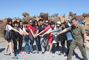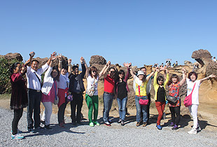參觀完總統(tǒng)府等景點(diǎn),伙伴們到達(dá)的是臺灣聞名遐邇的山水名勝——日月潭。澄碧的湖水、秀麗的青山,還有湖中那圓若明珠的天然小島,讓人不禁為眼前的美景而嘖嘖贊嘆。而野柳地質(zhì)公園的風(fēng)化巖景區(qū),女皇頭像、蘑菇群落、駱駝洗澡、大象戲水……均是大自然鬼斧神工的杰作。臨崖遠(yuǎn)眺,碧波萬頃;俯視則驚濤駭浪,奪人心魄。旅行團(tuán)的成員們見此情景興奮不已,對著遠(yuǎn)方大聲吶喊。因?yàn)樽鳛榫G之韻人,從來就不懼怕風(fēng)浪,不管前行的路有多崎嶇,綠之韻人都有迎難而上、披荊斬棘的勇氣。