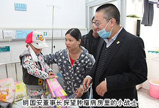 “我打心底的佩服孩子們,佩服他們頑強的生命意志,在他們的眼中,就算是黑夜也同樣可以看見彩虹,這不是奇跡,一種對生命的信念。這里是一個大家庭,和諧、溫馨、充滿愛,正是這種愛讓家長和孩子們充滿信心與病魔作斗爭,并一次又一次的取得勝利,培養(yǎng)出這些勇敢的小戰(zhàn)士!”胡國安董事長輕輕抱起一名3歲多的白血病患兒,一席話,深深感染著周圍的每一個人。