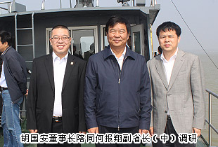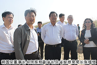 秋日暖照,浩瀚洞庭湖環(huán)繞的青山島迎來特殊的“游客”。2014年10月22日,湖南省人民政府副省長(zhǎng)何報(bào)翔以及省旅游局局長(zhǎng)張值恒、省國(guó)土資源廳資源廳副廳長(zhǎng)王善明、省水利廳巡視員劉佩亞、省工商聯(lián)副主席陳宏忠等一行來到洞庭湖實(shí)地察看,并就如何加快洞庭湖片區(qū)旅游開發(fā)展開調(diào)研。綠之韻集團(tuán)董事長(zhǎng)胡國(guó)安受邀參與洞庭湖區(qū)水上旅游項(xiàng)目開發(fā)以及游艇基地等項(xiàng)目評(píng)估。岳陽市人民政府副市長(zhǎng)宋愛華、市政協(xié)主席、工商聯(lián)主席劉曉英等陪同調(diào)研。