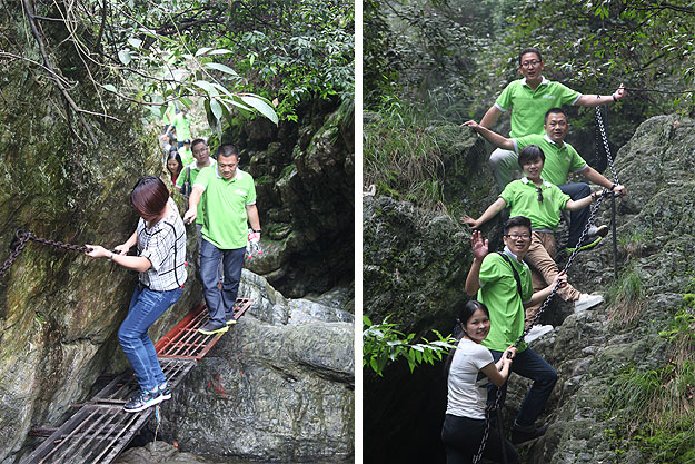 悠悠蒼穹,思接千載。在安化縣的崇山峻嶺和山澗溪流之間,綿延著一條神秘的茶馬古道。千百年來,無數的馬幫在這條道路上默默行走,悠遠的馬鈴聲,回蕩在山谷、急流和村寨上空,開辟了一條通往域外的經貿之路,形成了世界上地勢最高、山路最險、距離最遙遠的茶馬文明古道。在關山峽谷層巖疊翠,怪石嶙峋的道路上行走,綠之韻伙伴們盡情體驗了一番攀巖探險的刺激和樂趣。正是因為古道的艱險超乎尋常,沿途壯麗的自然景觀也不斷地激發(fā)人潛在的勇氣、力量和忍耐?!安桉R古道馬幫所經歷的冒險性是人所共稱道的,他們身上最為突出的特征就是他們的冒險精神。為了生存,為了貿易獲利,馬幫們幾乎是以自己的生命去冒險。這種冒險體現在三個方面:一是生意上的冒險,二是面對嚴峻的大自然的冒險,三是土匪強盜的威脅。馬幫的這種冒險精神,值得我們每一個綠之韻人深思和學習!”綠之韻總裁助理方彥雄在尋蹤茶馬古道途中感慨萬千。