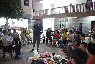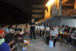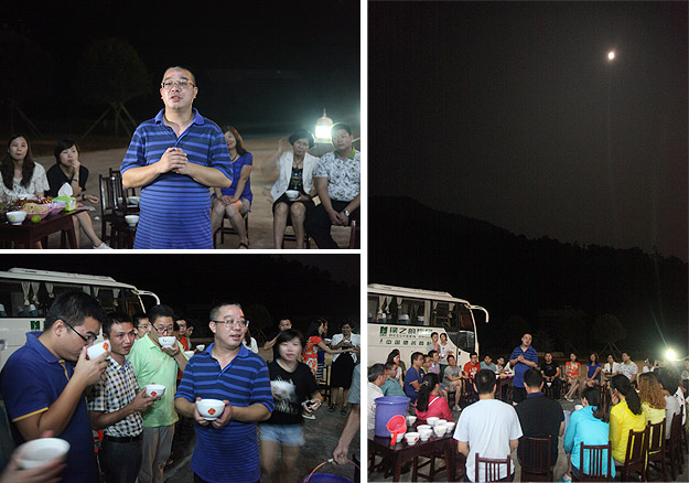 中秋圓月當空照,綠韻山莊話家常。吃完晚餐,大家圍坐在寬敞的前坪,一場中秋月圓之夜的茶話會激情上演。大家暢所欲言地交流,伙伴們精心編排的“小蘋果”激情舞動,氛圍無比融洽。中醫(yī)養(yǎng)生專家、湖南中醫(yī)藥大學李定文教授為大家?guī)砹恕安枧c人生”、“茶與健康”的精彩講演;公司常年法律顧問尹湘南律師根據自己兩天來的親身體驗,暢談了心中所想、所思、所悟。隨后,大家開始玩起了“擊鼓傳花”的游戲,誰接到鼓聲停止的那一棒就即興表演節(jié)目,有的清唱山歌,有點翩翩起舞,有的講起笑話,有的表演小品,其樂融融,親如一家。茶話會上,胡國安董事長深情滿懷地說:“我家門前的小九溪,從著名的雪峰山深處走來,拐個彎又不知疲倦地往外面的世界奔去。沿著這條小溪,我走過了童年、少年,明白了在群山之間蜿蜒奔流的小九溪的夢想,明白了小九溪晝夜不舍奔向浩瀚汪洋的意義。我想,一個人、一支團隊或者一個企業(yè),如果能夠像小九溪一樣,堅韌執(zhí)著于夢想,不畏萬難咬目標,何愁不能成長、發(fā)展,乃至基業(yè)長青呢?這一次邀請優(yōu)秀黨員、員工來到我的家鄉(xiāng)做客,就是想讓大家深刻領悟‘水的精神’、‘家文化’的根本,切身明白‘綠之韻水的精神和家文化’存在于諸位人生、綠之韻發(fā)展中的重要意義?!?/span>