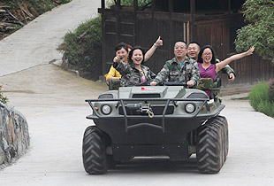 雪峰山因山頂長年積雪而得名,是為資江與沅水的分水嶺。地理位置獨特優(yōu)越,集納天地之靈氣,廣沐日月之精華,可謂山水形勝,物華天寶。6日清晨,在胡國安董事長的帶領下,大家來到了位于雪峰山東麓下的農家菜園,這里梯田縱橫、稻浪隨風起舞、長勢喜人,這里野生、正宗、天然、綠色、環(huán)保、自然的果蔬,林林總總、生機盎然、滿園飄香,惹人喜愛;午后,胡國安董事長饒有興致地親自駕駛水陸兩用軍車,技藝嫻熟地載著伙伴們在并不十分寬敞的鄉(xiāng)間水泥路上旋轉漂移,風馳電掣。幾位膽大的伙伴們,登車一試身手,那種肆意奔騰、塵土飛揚的暢快感受令人大呼過癮。晚餐將近,周圍鄰里看著村里來了客人,紛紛從家里送來自種的土菜、瓜果和零食,大家完全沒有距離感,那份親近猶如走親戚串門,讓每一個人心里都溫暖異常。