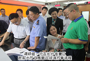 2014年8月14日,在湖南省政協(xié)黨組副書記、副主席武吉海的帶領(lǐng)下,“工商企業(yè)登記制度改革”民主監(jiān)督調(diào)研組一行先后深入初始創(chuàng)業(yè)企業(yè)、長沙市岳麓區(qū)政務(wù)中心、長沙市政務(wù)中心服務(wù)大廳考察指導(dǎo),并長沙市政協(xié)會議廳召開現(xiàn)場辦公座談會,匯報交流,查找問題,提出建議,部署下一步工作安排。