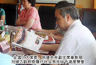全國人大常委、全國人大財經(jīng)委員會副主任、民建中央副主席、著名經(jīng)濟學(xué)家辜勝阻認(rèn)真聽取并記錄了胡國安董事長的匯報內(nèi)容,對綠之韻集團的經(jīng)營理念、產(chǎn)品研發(fā)、非公黨建和黨的群眾路線教育實踐活動成果給予了充分認(rèn)可和高度贊譽;對綠之韻集團在經(jīng)濟發(fā)展大環(huán)境下積極轉(zhuǎn)型;對綠之韻情系民生、心憂天下,產(chǎn)業(yè)扶貧,教育扶貧以及每年度向社會發(fā)布一本《企業(yè)社會責(zé)任報告》的成功做法表示出濃厚興趣和高度贊譽。