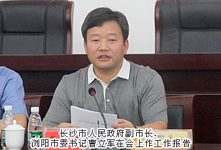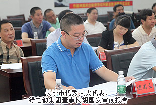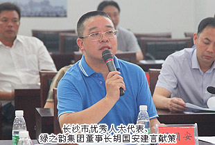 2014年7月29日,長沙市“一府兩院”向市人大代表瀏陽聯(lián)組通報2014年上半年工作會議在瀏陽市政務服務中心成功舉行。長沙市第十二屆人大常委會主任楊順初,長沙市人大常委會副主任趙建強,長沙市人民政府副市長、瀏陽市委書記曹立軍,長沙市中級人民法院副院長黎軍,長沙市人民檢察院副檢察長祝珍明,長沙市僑聯(lián)主席翁少蘭,中共瀏陽市委副書記、市人民政府市長余勛偉,瀏陽市人大常委會主任魯建文等領(lǐng)導蒞臨現(xiàn)場,長沙市優(yōu)秀人大代表、綠之韻集團董事長胡國安受邀出席,并在會議上發(fā)言。