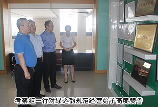 會議結(jié)束以后,長沙市中級人民法院副院長黎軍、長沙市人民檢察院副檢察長祝珍明、長沙市僑聯(lián)主席翁少蘭等一行8人饒有興致地親臨綠之韻集團考察指導工作,綠之韻集團董事長胡國安、董事常務副總裁勞嘉、總裁助理方彥雄全程陪同。