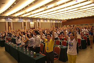 如果采摘藍(lán)莓,參觀基地,品藍(lán)莓酒,瀟灑過(guò)把“莊主”癮,這些都還嫌不夠,那么第二天的精彩行程,絕對(duì)讓精英們High翻全城。6月22日上午,綠之韻國(guó)際藍(lán)莓節(jié)旅游培訓(xùn)會(huì)如期舉行。特邀業(yè)界享有盛譽(yù)的營(yíng)養(yǎng)學(xué)導(dǎo)師王國(guó)佐教授,為綠之韻精英們帶來(lái)了“藍(lán)莓對(duì)人體健康”的專(zhuān)業(yè)演講;綠之韻國(guó)際商學(xué)院執(zhí)行院長(zhǎng)孫心琥震撼全場(chǎng)的精彩課程,贏得了現(xiàn)場(chǎng)一陣又一陣熱烈的掌聲;綠之韻集團(tuán)全球營(yíng)銷(xiāo)中心(中國(guó)區(qū))常務(wù)副總經(jīng)理諶獻(xiàn)軍“天城網(wǎng)規(guī)劃”的主題演講,給家人們送來(lái)了打開(kāi)財(cái)富、夢(mèng)想之門(mén)的另一把“金鑰匙”。在全場(chǎng)家人們的起立鼓掌下,胡國(guó)安董事長(zhǎng)激情澎湃地走上舞臺(tái),發(fā)表了震撼人心的重要講話。