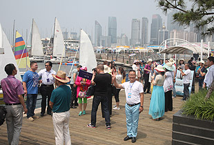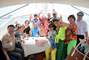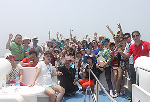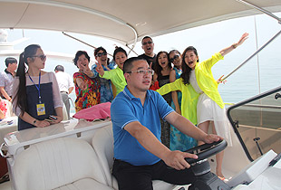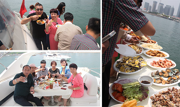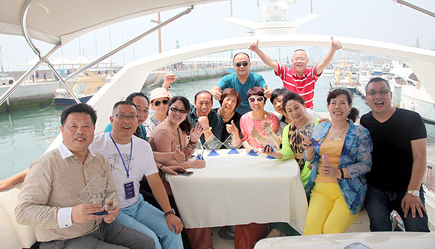 驕陽(yáng)海風(fēng)下,游艇載著綠之韻精英們?cè)诒滩ㄈf(wàn)頃,一望無(wú)際的海上破浪前行。三艘游艇沿著青島著名景觀航線“奧帆中心——五四廣場(chǎng)——太平角——第二海水浴場(chǎng)——八大關(guān)——匯泉灣——棧橋——海軍博物館——團(tuán)島灣——跨海大橋——北海船廠”,綠之韻精英們有的欣賞青島美景,有的悠閑聊天,有的暢享美食,有拍照合影,不亦樂(lè)乎。