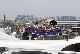 6月23日,碧空如洗,海風(fēng)拂面,山東青島2008年奧帆賽訓(xùn)練基地內(nèi),游人如織,熱鬧非凡,2014綠之韻至尊皇冠游艇俱樂(lè)部(青島航線)出航儀式圓滿舉行。這是一次高規(guī)模、高檔次、高品位的綠之韻精英聚會(huì)。在歡呼聲與掌聲中,在美麗藍(lán)莓天使的簇?fù)硐拢G之韻集團(tuán)董事長(zhǎng)親自為曹鳳華、徐華、張建軍、張吉慶、韓曉鳴、蘇龍輝、鄭百合、黃翔、李政沅、劉鳳軍、劉建平、劉文麗、孫彩虹、李長(zhǎng)宇、陳平、李平首批16位綠之韻游艇俱樂(lè)部特邀會(huì)員頒發(fā)了象征無(wú)上榮耀的水晶紀(jì)念牌。