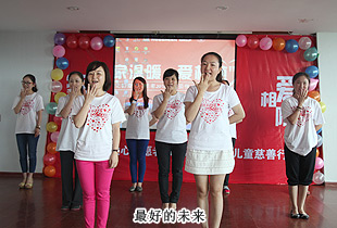 走進兒童活動室,一幅幅生動的場面映入眼簾:在老師的帶領下有的孩子在唱兒歌、有的在做游戲、有的在做康復訓練,一張張?zhí)煺鏌o邪的面容深深地觸動著志愿者們的心靈。生活在福利院里的孤殘兒童,他們是不幸的,但又是幸福的,因為“我有一個幸福的大家庭!”