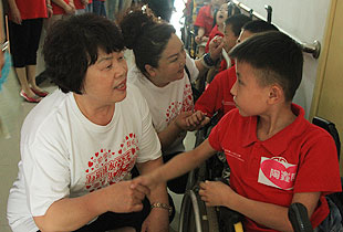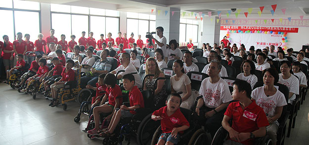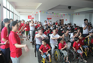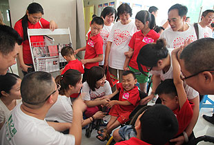 “福利院收養(yǎng)的孩子95%以上都是殘障兒童,其中腦癱又占絕大多數(shù),還有一些唇腭裂、肢體殘疾的患兒”,在衡陽服務了八年的英國籍、ICC衡陽春天福利院負責人愛麗向志愿者們介紹。在這里,還有許許多多的外教,他們遠離祖國無償義務服務在這里,這種無私的精神讓人欽佩和尊敬。在這里,也還有許許多多的“特護媽媽”,他們每天都在照顧著孩子,用自己的滿腔熱情和愛心,無怨無悔當好孤殘兒童的家人,讓每位孤殘兒童都享受到家庭的溫馨、濃濃的親情;他們盡職盡責當好老師,為每位孤殘兒童上好人生的第一課,用真情真愛為孤殘兒童撐起了一片藍天。