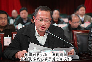中共瀏陽(yáng)市委書記曹立軍代表中共瀏陽(yáng)市委向大會(huì)勝利閉幕、向獲得表彰的先進(jìn)單位、優(yōu)秀委員、優(yōu)秀提案表示熱烈的祝賀。他指出,會(huì)議期間,各位委員以飽滿的政治熱情和強(qiáng)烈的責(zé)任意識(shí),積極參政議政,踴躍建言獻(xiàn)策,提出了許多寶貴意見和建議。會(huì)議開得隆重?zé)崃?、富有成效,是一次承前啟后、團(tuán)結(jié)民主、求真務(wù)實(shí)、催人奮進(jìn)的大會(huì)。
