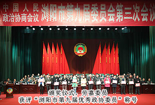 2014年1月13日,中國(guó)人民政治協(xié)商會(huì)議瀏陽(yáng)市第九屆委員會(huì)第三次會(huì)議勝利閉幕。期間,來自各條戰(zhàn)線的委員們聚集一堂,圍繞促進(jìn)瀏陽(yáng)科學(xué)發(fā)展、跨越發(fā)展積極建言獻(xiàn)策,認(rèn)真履行政治協(xié)商、民主監(jiān)督、參政議政的職能。本次會(huì)議應(yīng)到委員365人,因事因病請(qǐng)假6人,實(shí)到委員359人,符合《政協(xié)章程》規(guī)定。